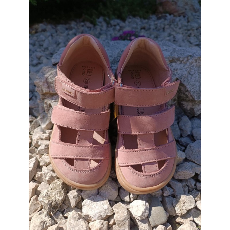 Sandálky jsou měkké a pohodlné. Nová flexibilní podrážka 2024. Anatomicky tvarovaná špička vhodná i pro dominantní palec. Svrchní materiál je kuže. Vyjímatelná textilní stélka bez podpory klenby. Bez opatku, zapínání na suché zipy. Vhodné na normální až širší nohy. Díky zipům lze regulovat na výšku nártu.