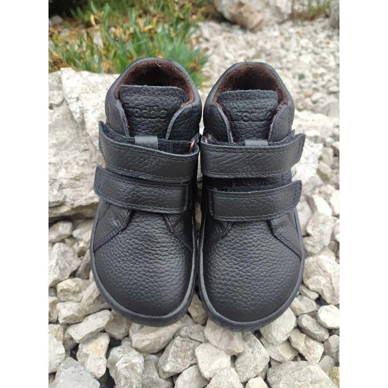 Kožené celoroční kotníčkové boty Froddo barefoot jsou měkké, pohodlné s flexibilní podrážkou. Boty jsou bez opatku, prostornější v oblasti prstů. Zapínání na dva suché zipy. Špička boty je chráněná přetaženou gumou. Sedí na normální až mírně širší nohy, dají se dobře utáhnout na úzký kotník. Uvnitř boty je textilní podšívka. Tento model je na nové Froddo podrážce.