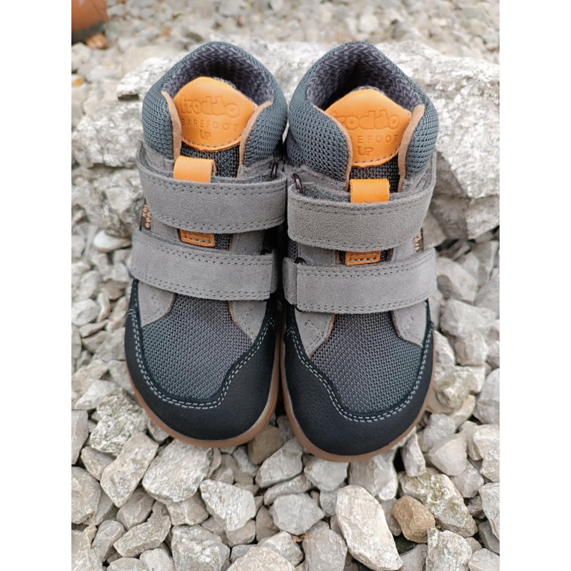 Celoroční vyšší kotníkové boty v kombinaci kůže a prodyšné textilie s membranou Froddo tex jsou měkké, pohodlné s flexibilní podrážkou. Boty jsou bez opatku, prostornější v oblasti prstů. Vyndávací vložka je vyrobena z recyklovatelného, antibakteriálního a prodyšného materiálu. Špička boty je chráněná přetaženou gumou. Sedí na normální až mírně širší nohy, dají se dobře utáhnout na úzký kotník a patu. Vhodné na dominantní palec.