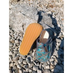 Domácí barefoot obuv značky Beda. Boty se vyznačují lehkostí a flexibilitou. Tyto papučky jsou prostorné pro prstíky. Podrážka je 2mm vysoká.