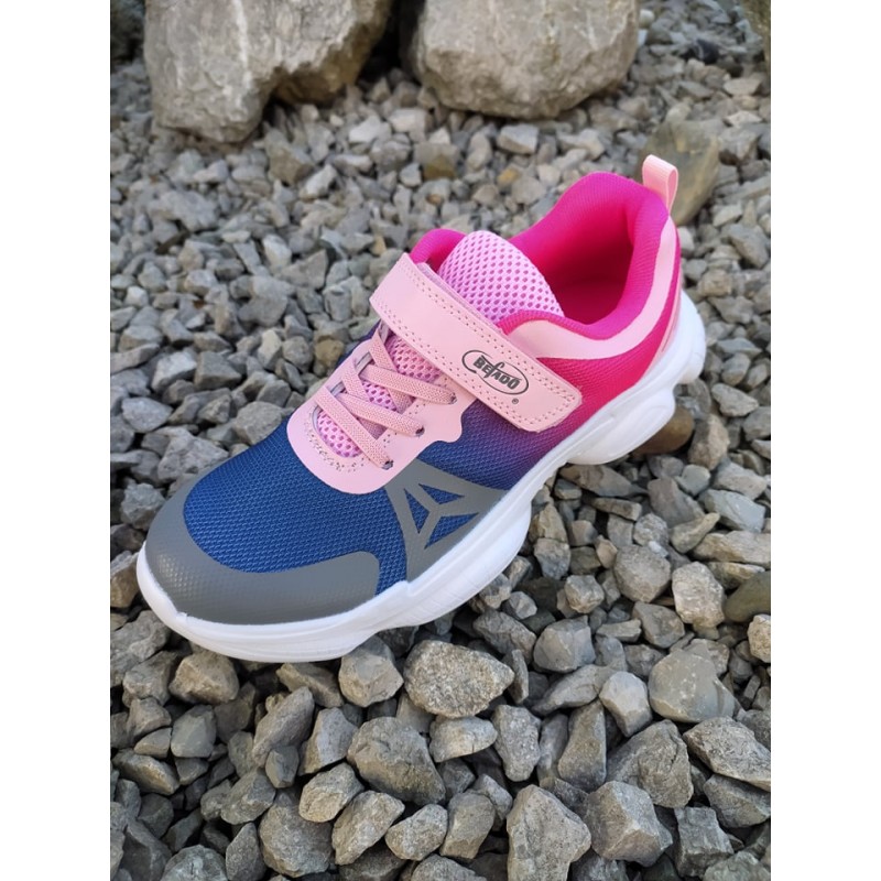 Velmi lehké dívčí tenisky na suchý zip v moderním designu. Kvalitní obuv s pružnou podešví vhodná na hřiště a tělocvičny.